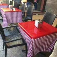 Couvre tables plexiglas rosso plié bar, parfaits avec la nappe à gros carrés. Ils ont 2 fonctions, ils protègent et bloquent la nappe